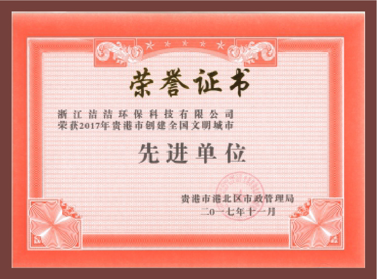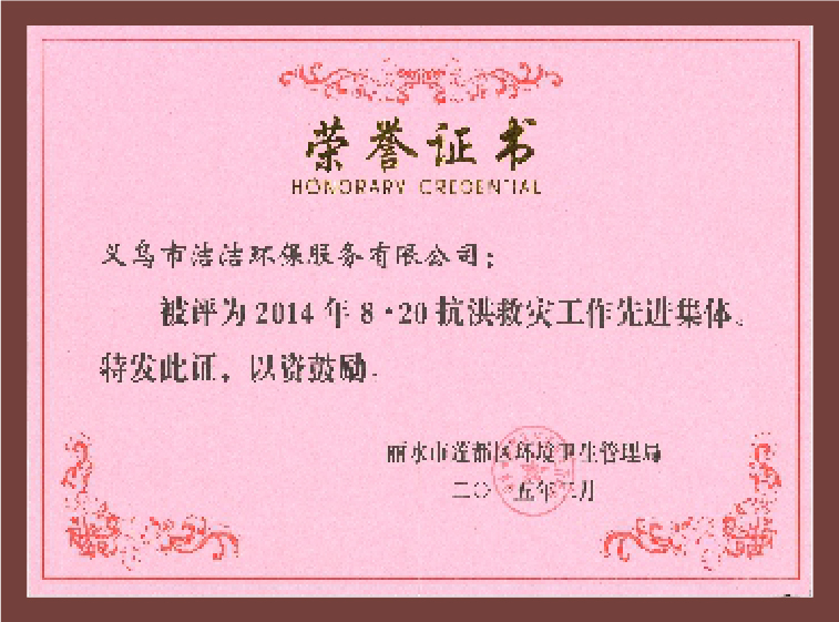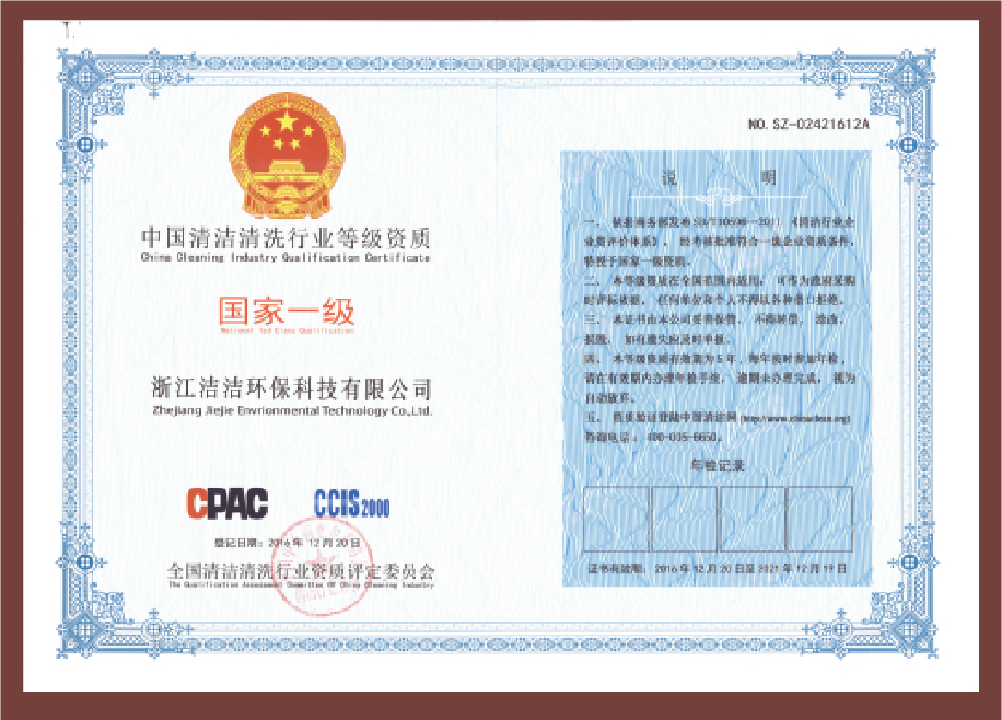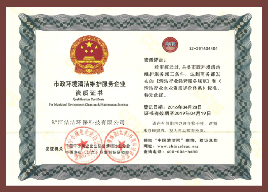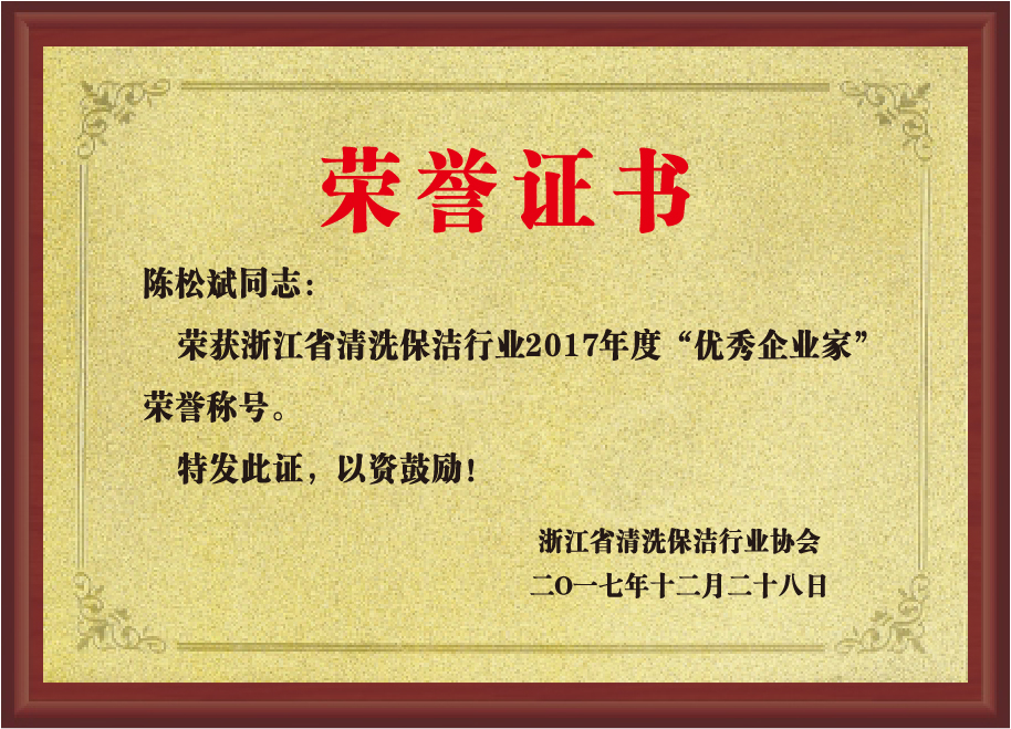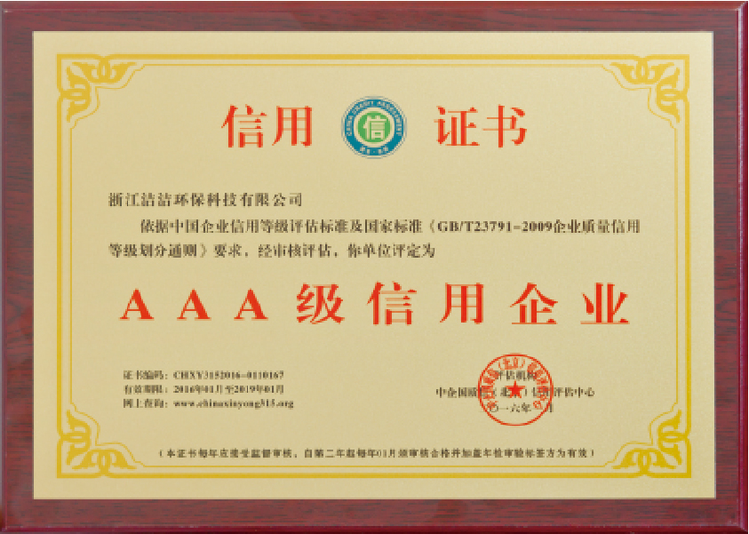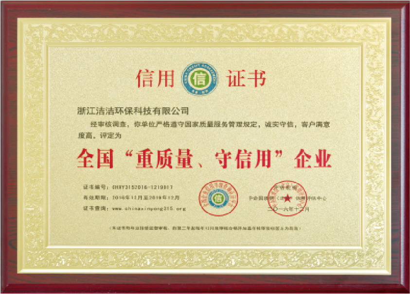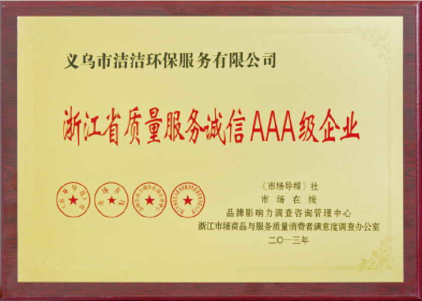 重要榮譽:“全國信用等級AAA級企業(yè)”、全國“重質(zhì)量、守信 用企業(yè)”、“浙江省質(zhì)量服務(wù)誠信AAA級企業(yè)”、中國中小商業(yè) 企業(yè)協(xié)會清潔行業(yè)分會常務(wù)理事員會單位